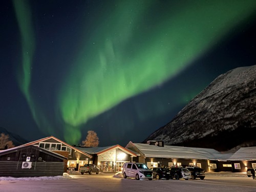 En aldri så liten bonus for oss fra SePU var nordlyset som danset over Vollan Gjestestue i Nordkjosbotn tirsdag kveld.